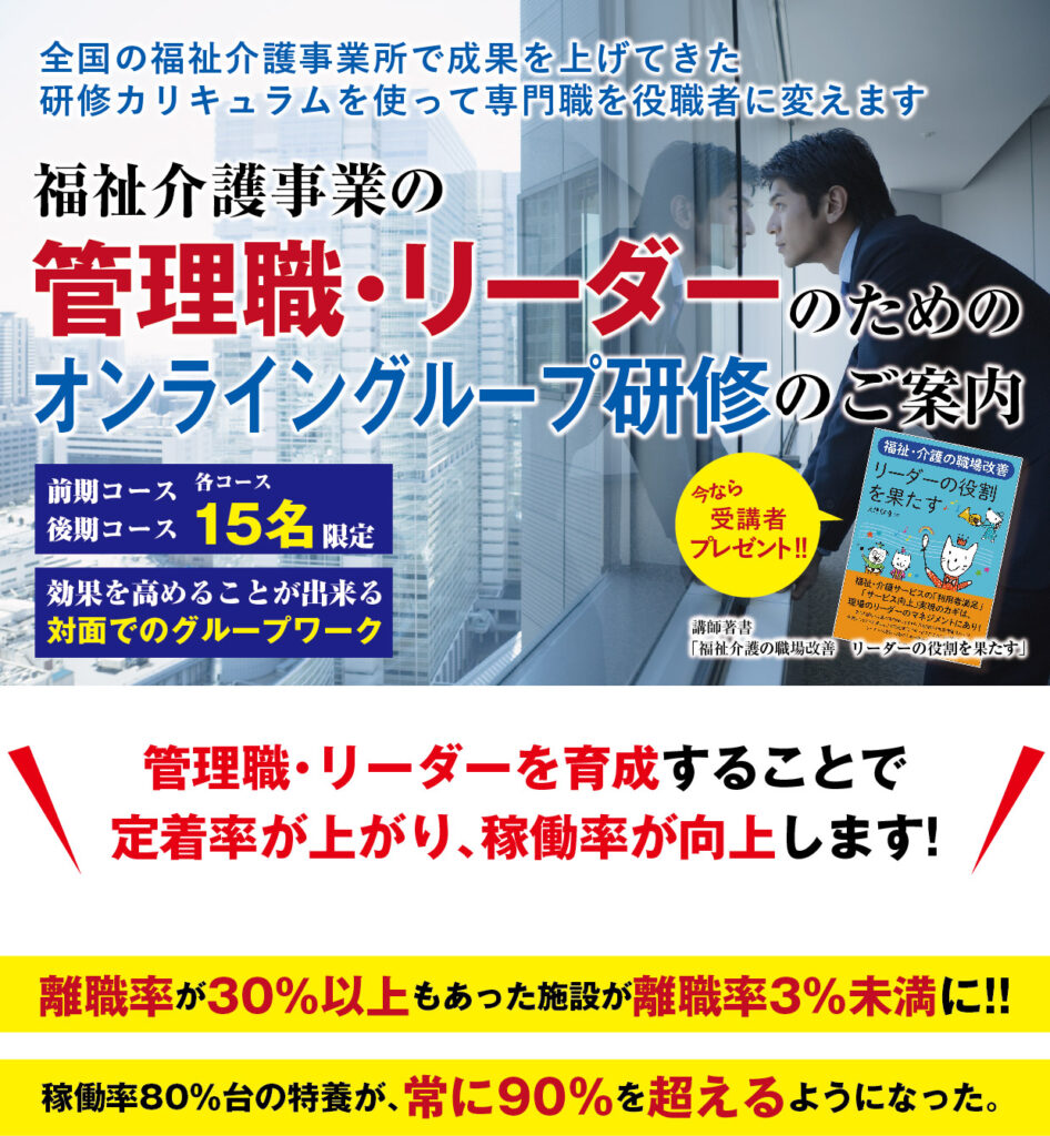- これからの福祉介護施設は経営が分かる管理職の存在が不可欠となるでしょう。